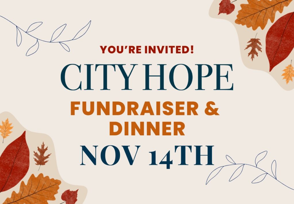 We warmly invite you to join us for our annual City Hope Fundraiser and Dinner at Harmony Bible Church in Burlington (550 Division St.) on Friday, November 14th, from 6 pm–8 pm.